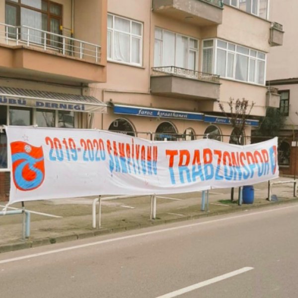 Kentte bir pankart açan bordo-mavili ekibin hazırladığı bu pankartta, ''2019-2020 Şampiyon Trabzonspor'' ifadeleri yer aldı.