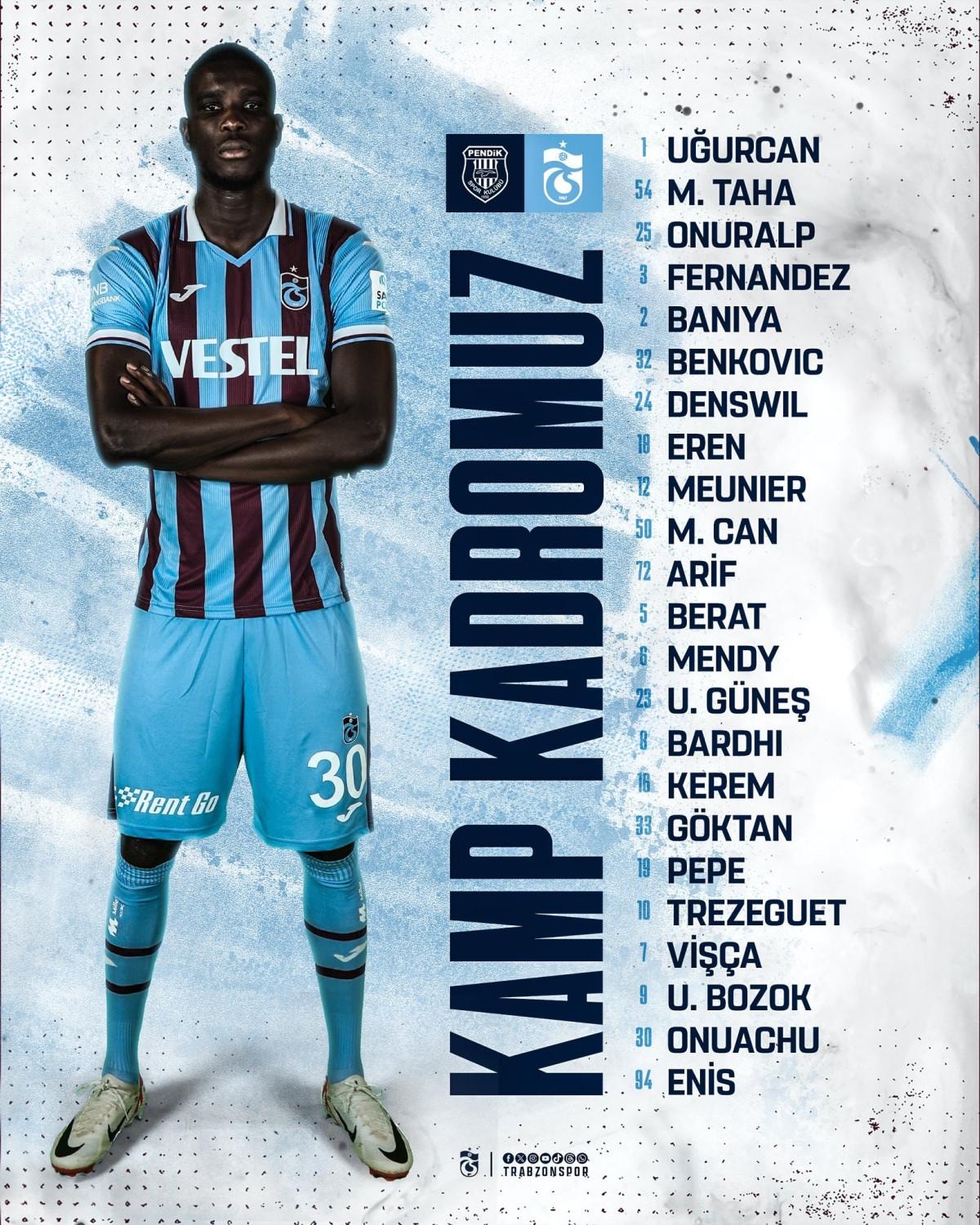 Karadeniz ekibinin Pendikspor ile oynayacağı maçın kamp kadrosu belli oldu.