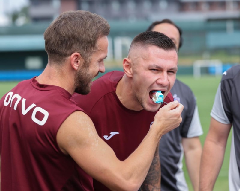 Antrenman öncesinde ise Ukraynalı oyuncu Oleksandr Zubkov için doğum günü kutlaması yapıldı.