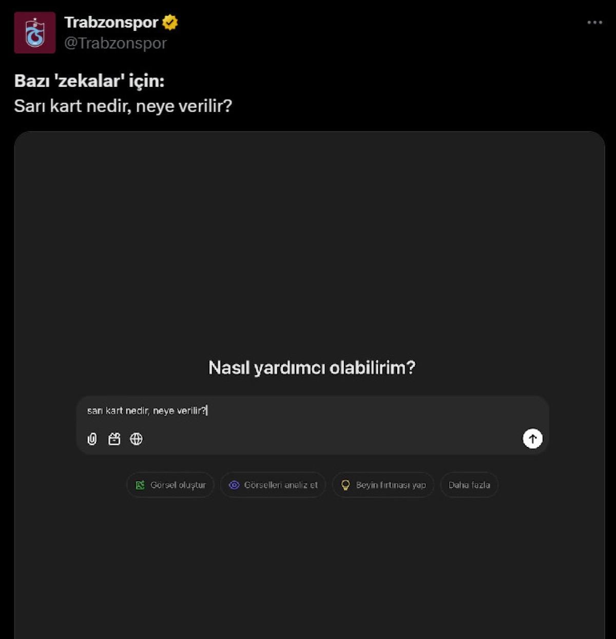 Bordo-mavililer, "Bazı 'zekalar' için: Sarı kart nedir, neye verilir?" ifadelerinin yer aldığı bir gönderi yayınladı.