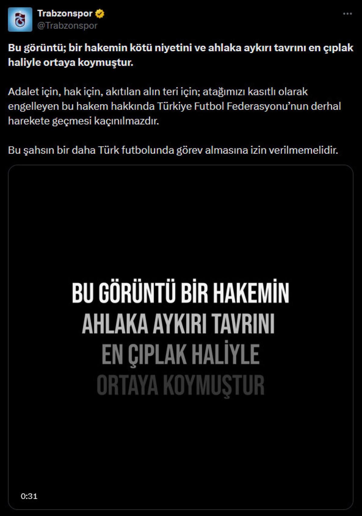 - Trabzonspor, hakem eleştirisini videolu paylaşım ile dile getirdi.