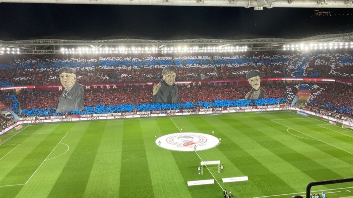 Bordo-mavili taraftarlar koreografide şampiyonluğa dikkat çekerken Özkan Sümer, Ahmet Suat Özyazıcı ve Abdullah Avcı’ya yer vererek tarihi anları Türkiye’nin beğenisine sundu.