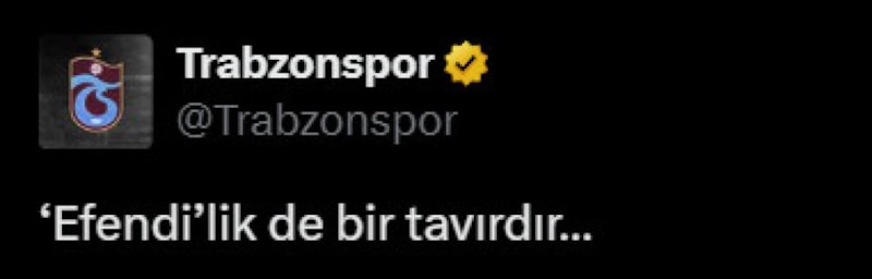 Trabzonspor'un paylaşımında, "'Efendi'lik de bir tavırdır…" ifadeleri yer aldı.