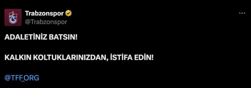 Bordo-mavili takım, PFDK'nın verdiği kararlar üzerine Türkiye Futbol Federasyonu'nu istifaya davet ederek sert bir gönderi yayınladı.
