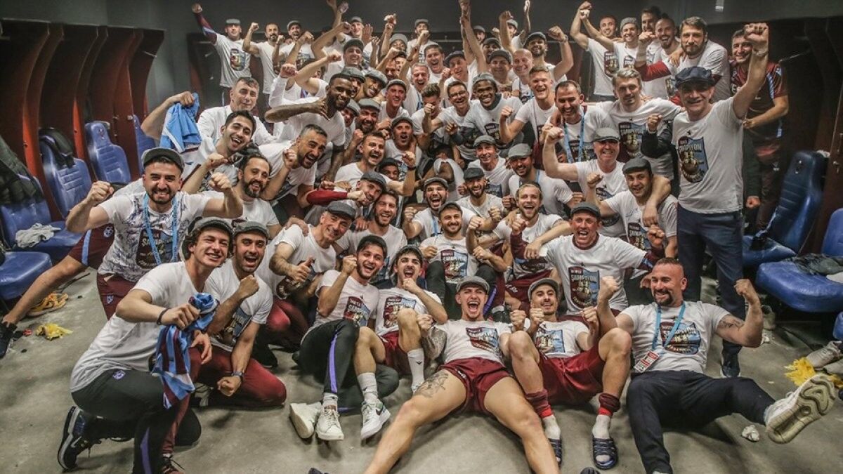 Süper Lig'de şampiyonluğunu ilan eden Trabzonspor'da futbolcular, Antalyaspor maçı sonrası soyunma odasında şampiyonluk pozu verdi.
