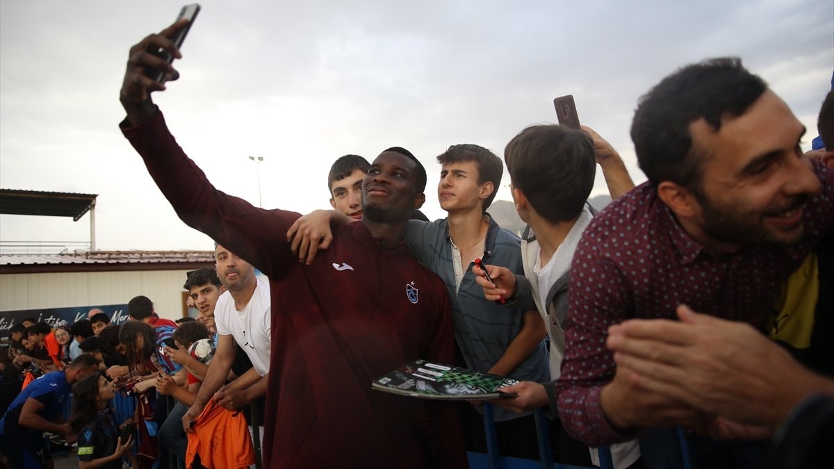 Erzurum'da, ikinci etap kamp çalışmalarına devam eden Trabzonsporlu futbolcular, yağmurlu havada taraftarla bir araya geldi.