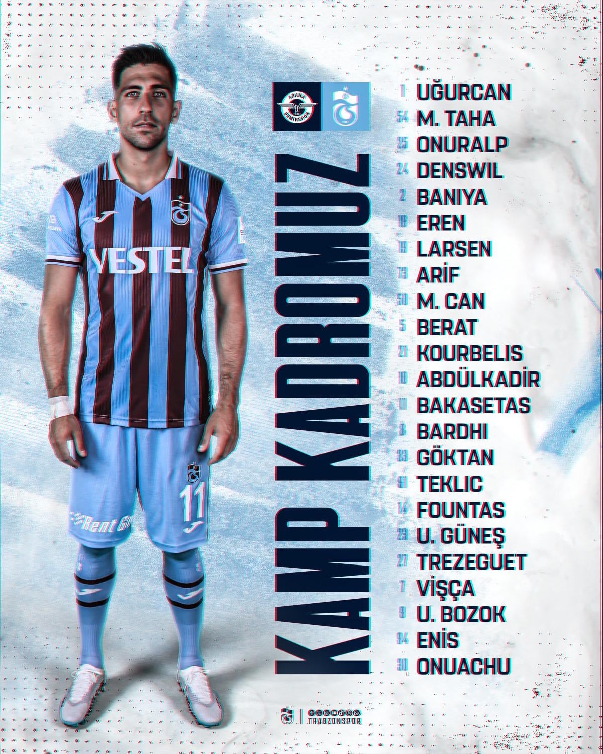 Lig müsabakası öncesinde bordo-mavili takımın kamp kadrosu açıklandı. Karadeniz ekibinde Dimitris Kourbelis 4 hafta aranın ardından kadroda yer alırken, sakatlıkları devam eden Filip Benkovic ve Nicolas Pepe ile cezalı Batista Mendy kadroda yer almadı.