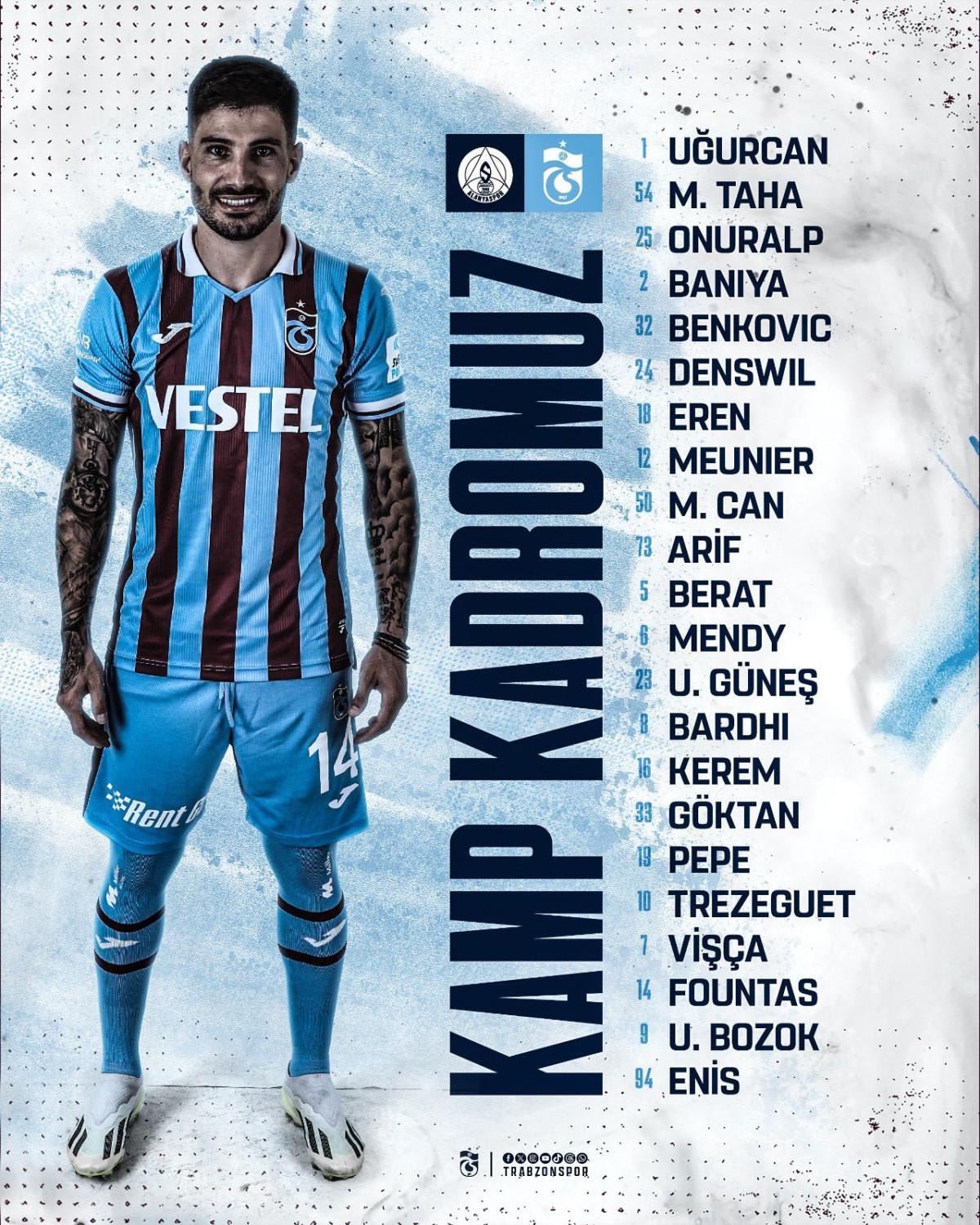 Trabzonspor'un kafilesinde şu isimler yer alıyor: