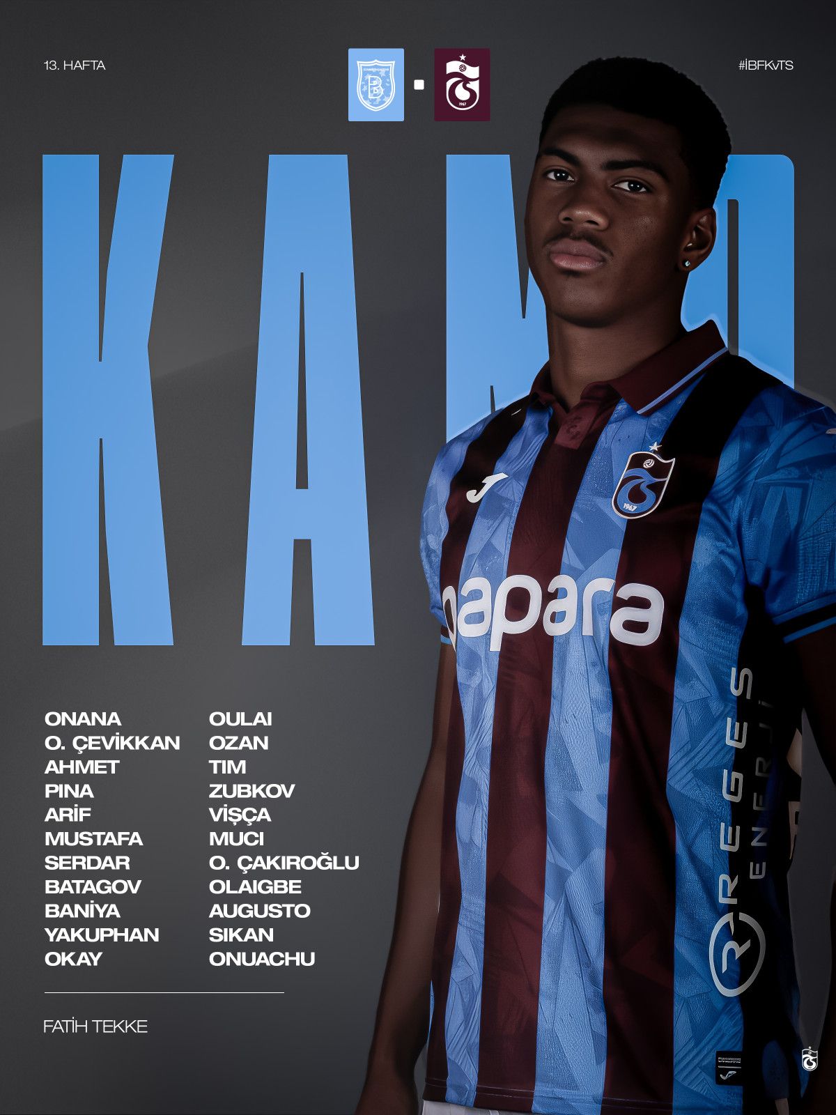 - Trabzonspor, Başakşehir ile deplasmanda oynayacağı Süper Lig maçının kamp kadrosunu açıkladı.