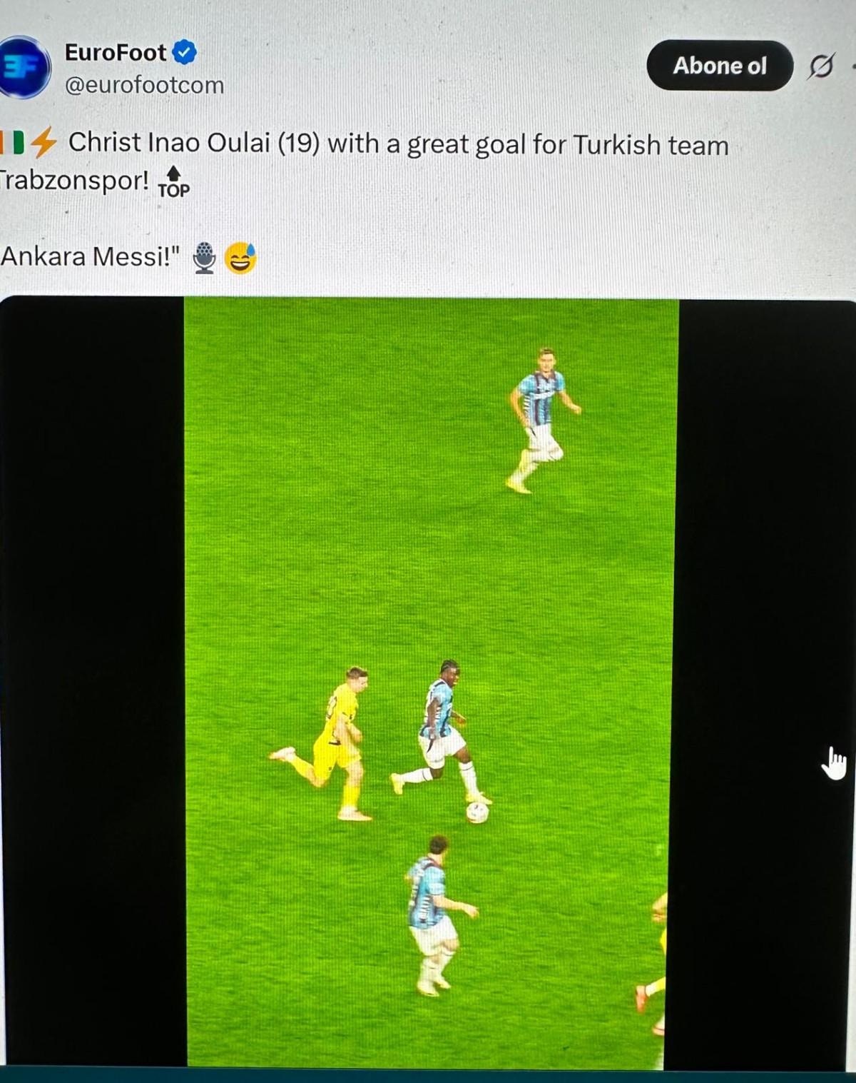 Avrupa’nın önde gelen yüksek takipçili bir diğer futbol sayfası Footballogue de Oulai’nin şık golünü ‘haftanın en etkileyici anlarından biri’ olarak okurlarıyla paylaştı.