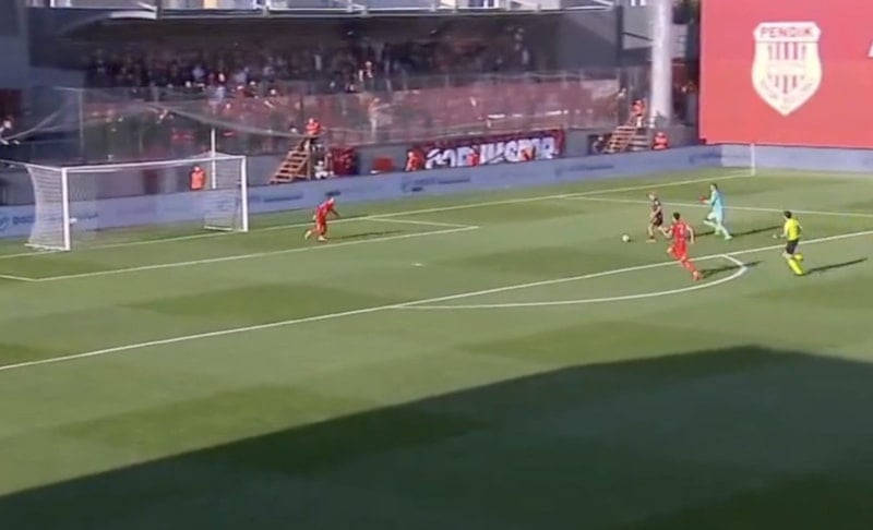 Mücadele Pendikspor’un 1-0’lık üstünlüğüyle devam ederken, maçın 88. dakikasında futbol sahalarında ender görülen bir an yaşandı.