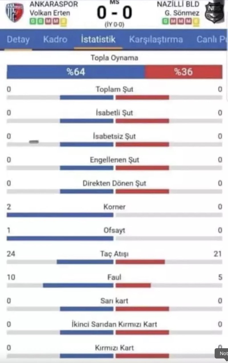 Öte yandan 2024'ün nisan ayının sonunda 2. Lig Beyaz Grup'ta Ankaraspor ile Nazilli Belediyespor karşı karşıya gelmişti.