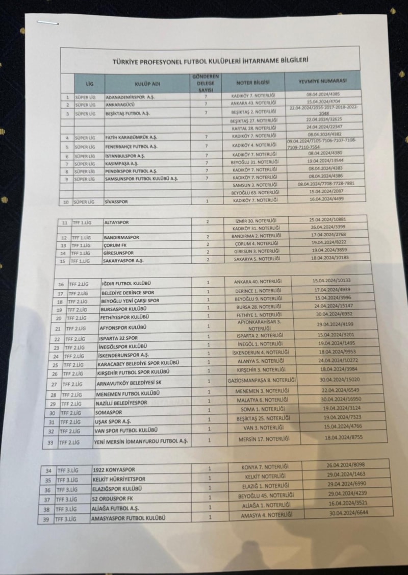 Öte yandan TFF'nin bu açıklaması sonrası Kulüpler Birliği imza veren delegelerin belgesini paylaştı.