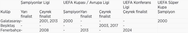 Galatasaray'ın 2000 yılında kazandığı UEFA Kupası ve Süper Kupa zaferlerinin ardından Türk futbolu Avrupa’da benzer bir başarıyı yakalayamadı. Son 25 yılda sadece Fenerbahçe yarı final görebildi. Şampiyonlar Ligi'nde sadece Galatasaray ve Fenerbahçe çeyrek final görürken, Türk takımlarının Avrupa'daki başarısızlığı dikkat çekti.