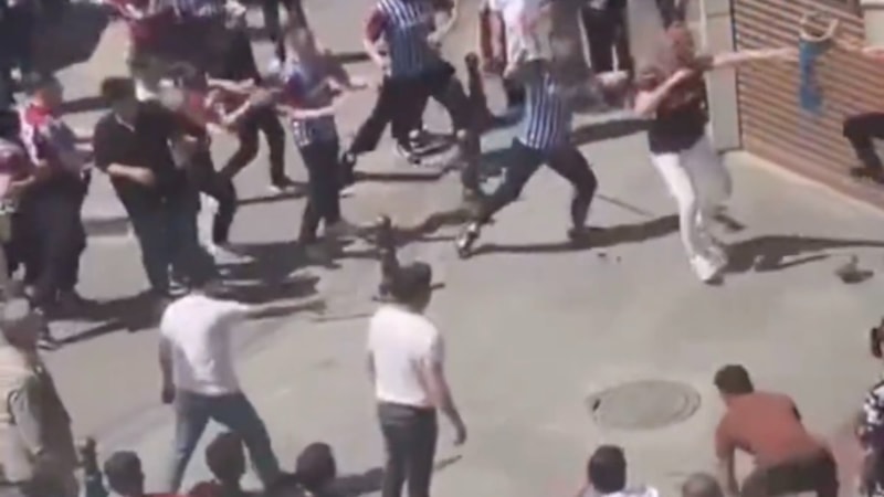 Gaziantep'te oynanacak olan Türkiye Kupası finali öncesi Galatasaraylı ve Trabzonsporlu taraftarlar arasında kavga çıktı. O anlar vatandaş kamerasına böyle yansıdı...
