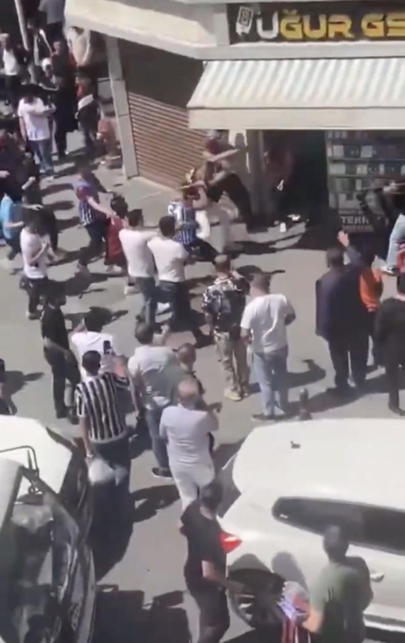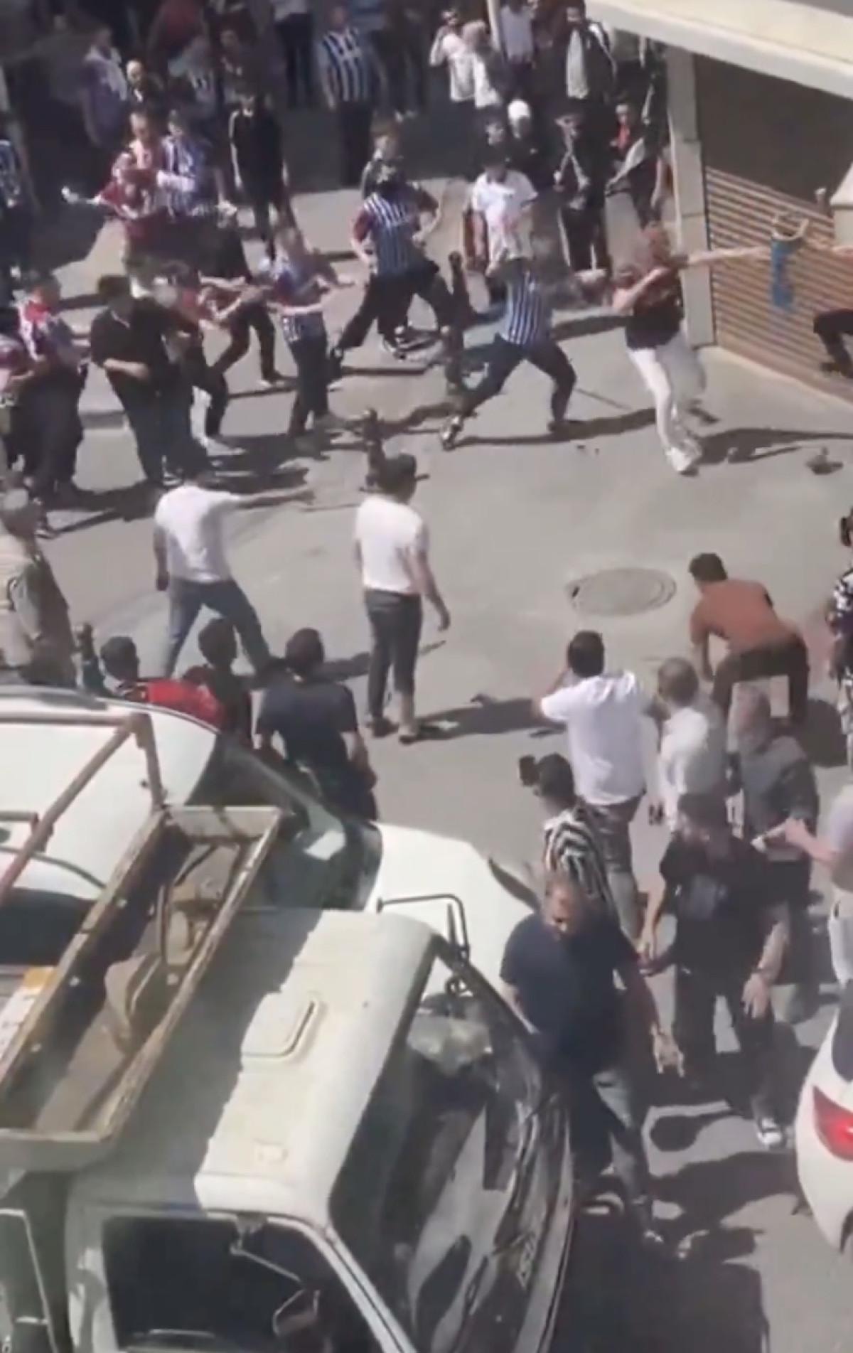 Ardından da birbirlerine saldıran taraftarlar bir anda ortalığı birbirine kattı.