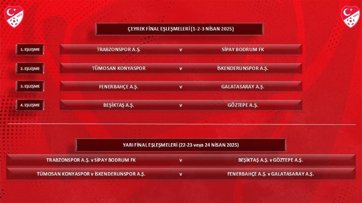 En dikkat çeken eşleşme olarak ise Türkiye Kupası çeyrek finalinde Fenerbahçe-Galatasaray derbisi oynanacak.
