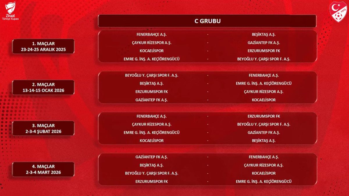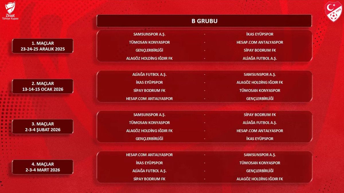 - Türkiye Kupası 2025/26 sezonunun grup eşleşmeleri belli oldu.