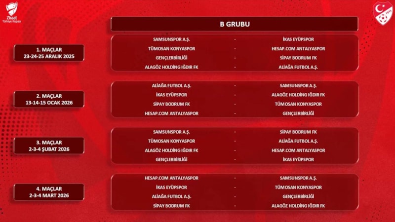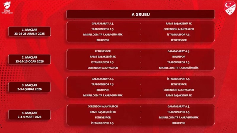 Türkiye Kupası'nda 2025/26 sezonunun grup etabında eşleşmeler belli oldu.