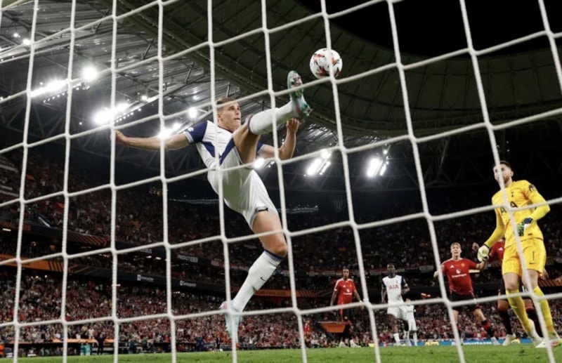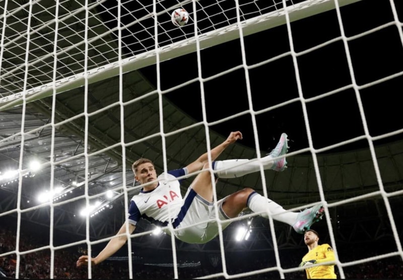 Tottenham'ın savunma oyuncusu Micky van de Ven, adeta uçtu ve top filelerle buluşmadan önce çizgi üzerinde golü engelledi.