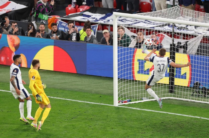 UEFA Avrupa Ligi finalinde savunma oyuncusu Micky van de Ven, Tottenham'a adeta şampiyonluğu getirdi. İşte o an...