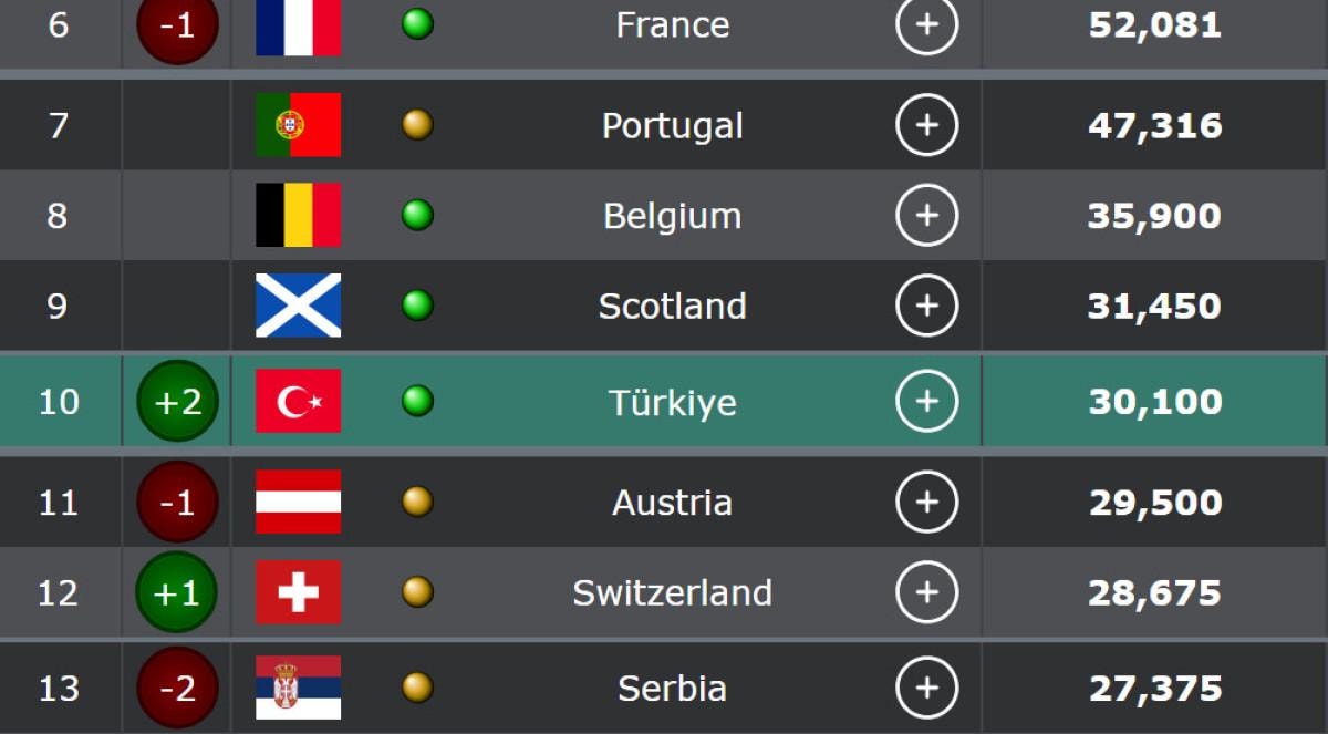 İşte UEFA'nın ülke puanı katsayılarını listelediği sıralamada son durum: