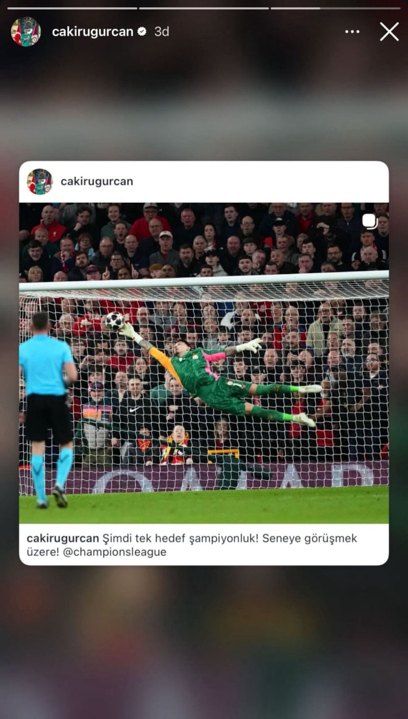 Galatasaray'ın başarılı kalecisi Uğurcan Çakır, Liverpool maçının ardından "Şimdi tek hedef şampiyonluk! Seneye görüşmek üzere!" paylaşımını yaptı.