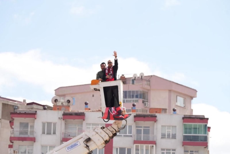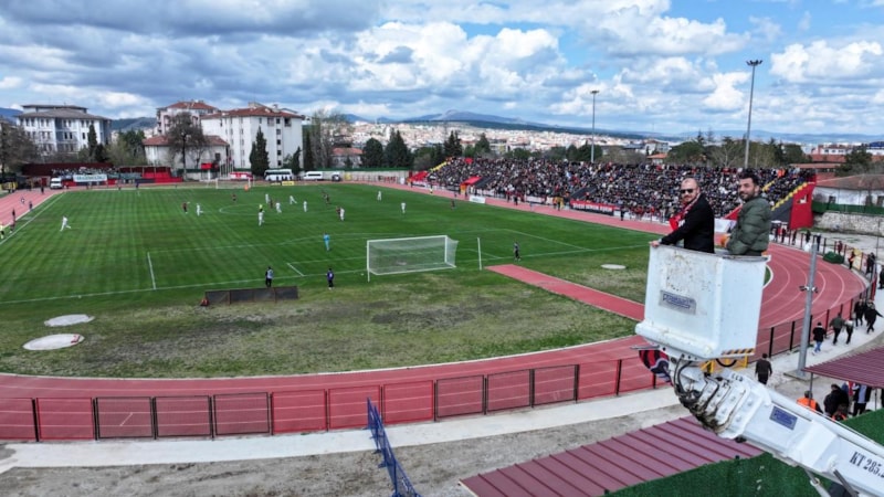Uşak 1 Eylül Stadı'nda tribünlerin dolu olduğu karşılaşmayı Doğukan Kurnaz, stat dışından vinç üzerinden takip etti.