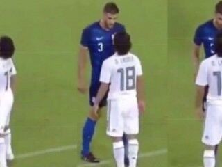 Uzun boylu futbolcu kısa boylu rakibiyle dalga geçti - VİDEO