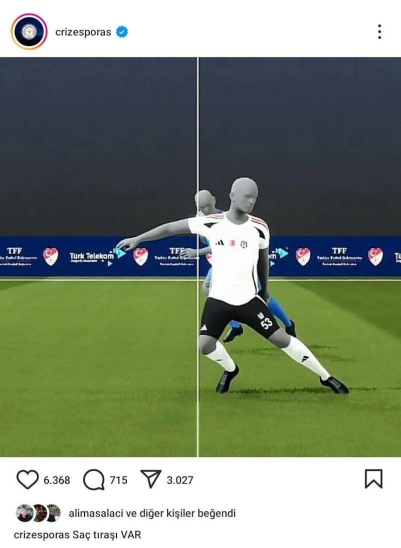Karşılaşmanın ardından ise Rizespor sosyal medya hesabı üzerinden yarı otomatik VAR sistemi tarafından hazırlanan görseli ‘Saç tıraşı VAR' ifadeleriyle paylaştı.