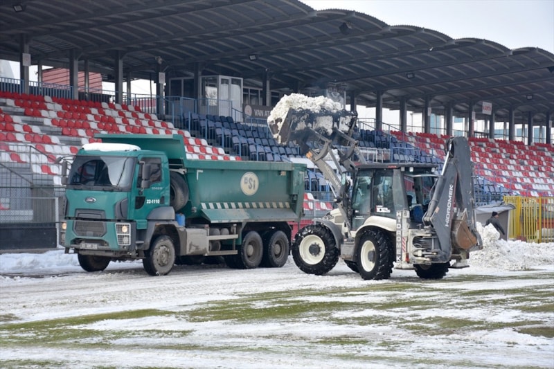 Vanspor'un 1. Lig'in 20. haftasında cuma günü sahasında oynayacağı Boluspor maçı öncesi stadyumda karla mücadele çalışması yürütüldü.