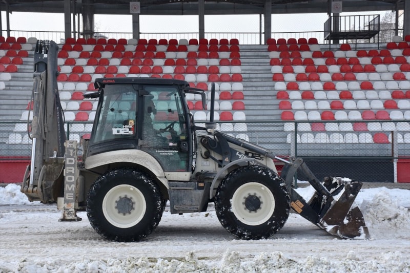 Gençlik ve Spor İl Müdürlüğü, Büyükşehir Belediyesi ve Devlet Su İşleri 17. Bölge Müdürlüğü ekipleri, stadyumda biriken kar yığınlarını kamyonlarla şehir dışına çıkardı.
