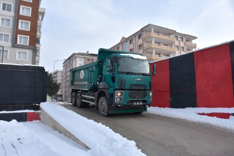 Olumsuz hava koşullarının etkili olduğu Van'da Atatürk Stadyumu'nda biriken kar, kamyonlarla il dışına çıkarıldı.