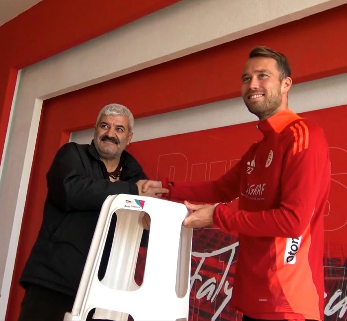 Ev sahibi takımın Kayserispor'u 2-0 mağlup ettiği karşılaşmadan sonra Antalyaspor, 3 gün içinde hem futbolcuyu hem de yere düşen güvenlik görevlisi Hünkaş Ergin'i bir araya getirdi.