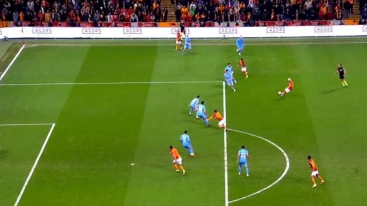 Dakikalar 45+1'i gösterdiğinde Galatasaray'ın sağdan geliştirdiği atakta Lucas Torreira, arka alana doğru ortasını yaptı.