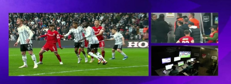 Dakikalar 36'yı gösterdiğinde hakem Burak Pakkan, Beşiktaş ceza sahası içinde yaşanan pozisyon ve VAR'dan gelen uyarı sonrası ekrana gitti.