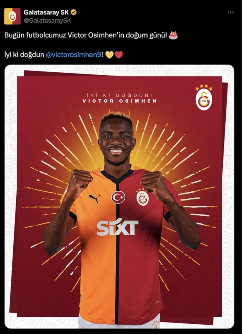 Öte yandan Galatasaray Kulübü, sosyal medya hesabından yaptığı paylaşımla, 26 yaşına giren forvet oyuncusunun doğum gününü kutladı.
