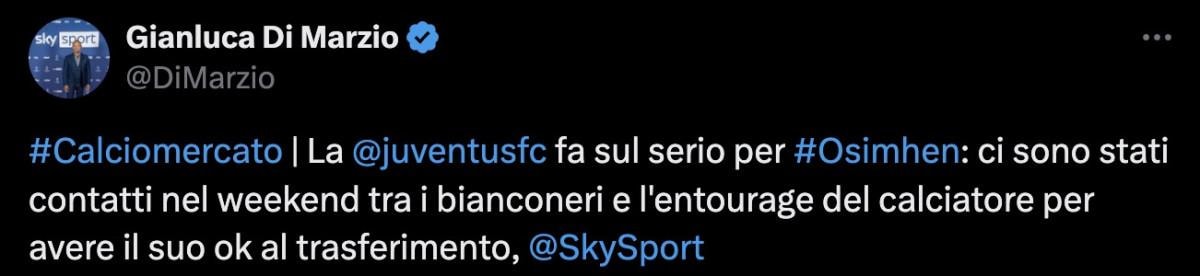 Öte yandan Gianluca Di Marzio'nun haberine göre; Torino ekibi, uzun süredir listesinde yer alan Victor Osimhen için ciddi adımlar atmaya başladı.