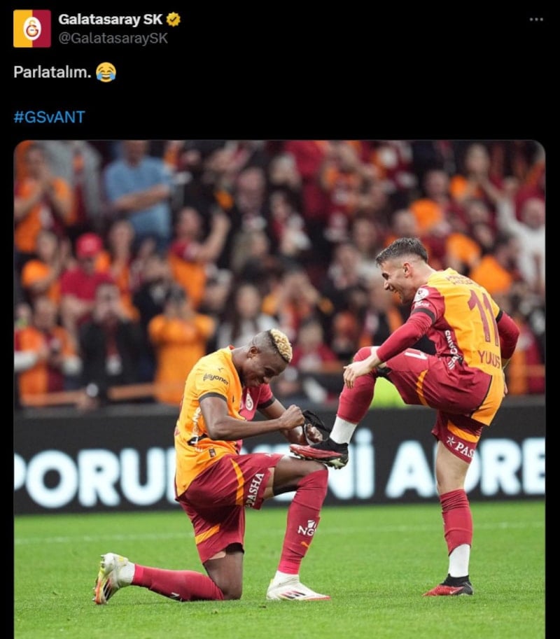 Galatasaray Kulübü, Victor Osimhen ve Yunus Akgün'ün gol sevincini ardından "Parlatalım" ifadesinin yer aldığı bir paylaşım yaptı.
