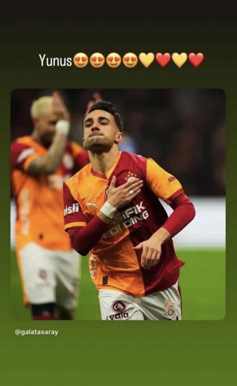 Osimhen ilk paylaşımında, Galatasaray'ın Yunus Akgün'le ilgili gönderisini alıntılayıp sarı-kırmızı kalp emojilerini ekledi.