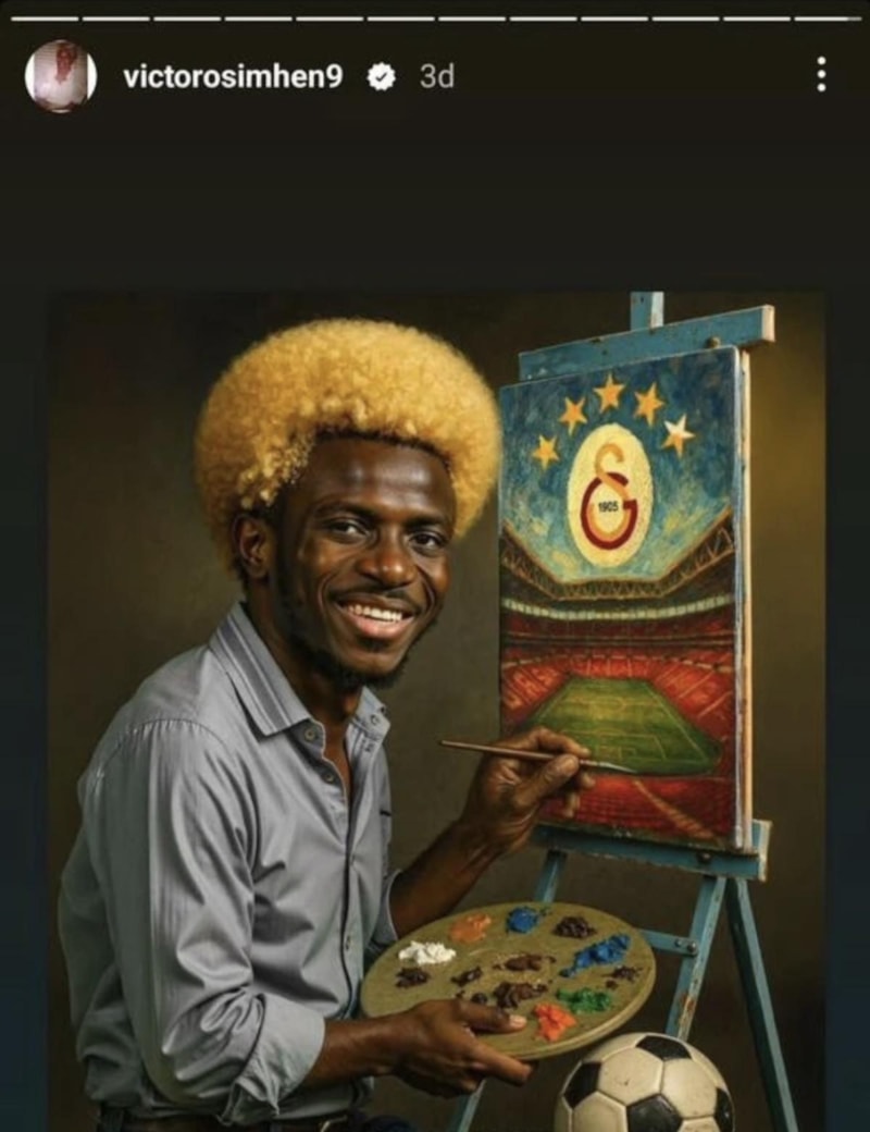 Galatasaray'ın dünyaca ünlü golcüsü Victor Osimhen, Sivasspor karşılaşmasının ardından ünlü ressam Bob Ross konsepti ile hazırlanan bir paylaşım yaptı.