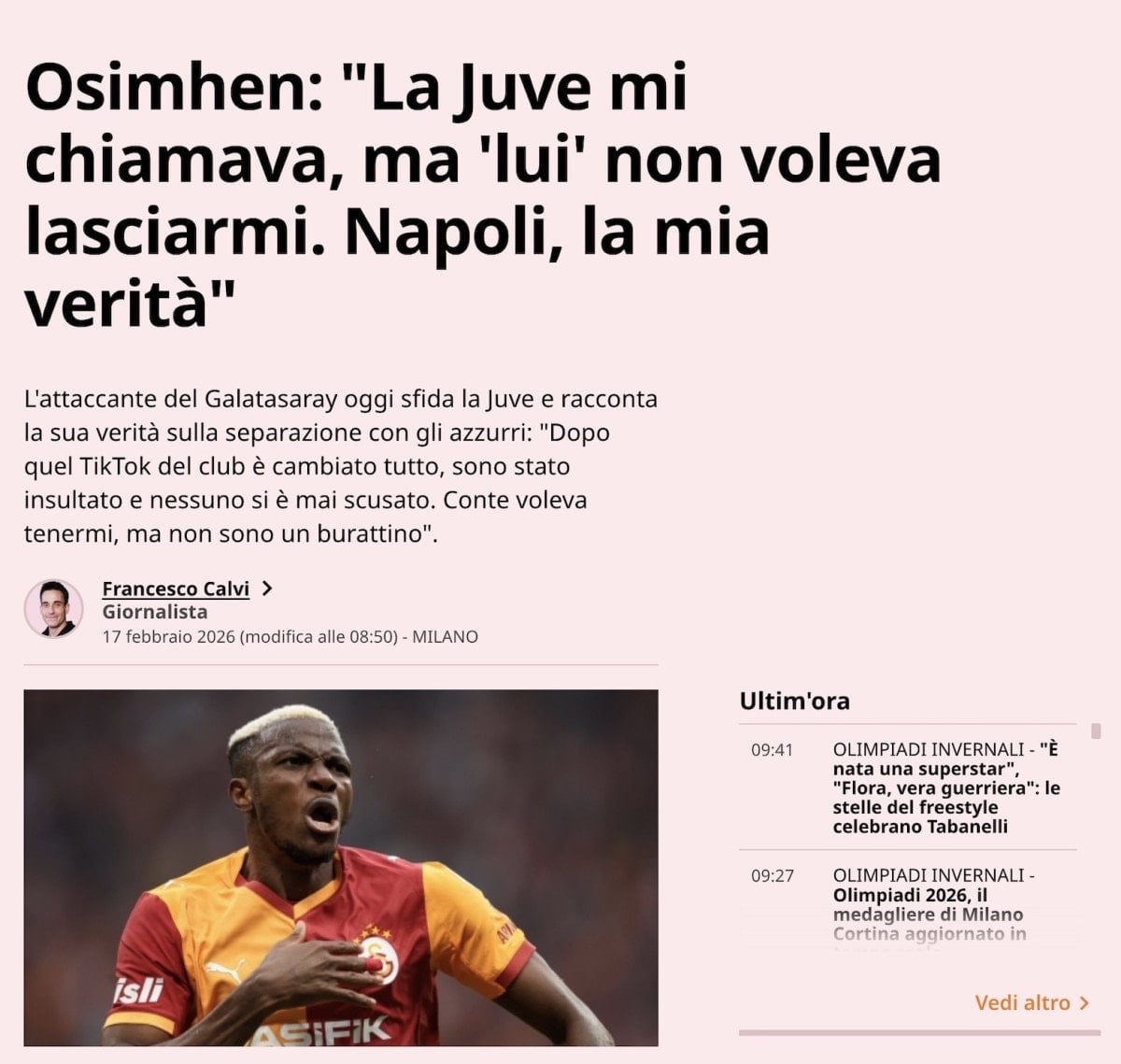 Galatasaray'ın Nijeryalı yıldızı Victor Osimhen, Juventus maçı öncesi İtalyan basınından La Gazetta Dello Sport'a konuştu.