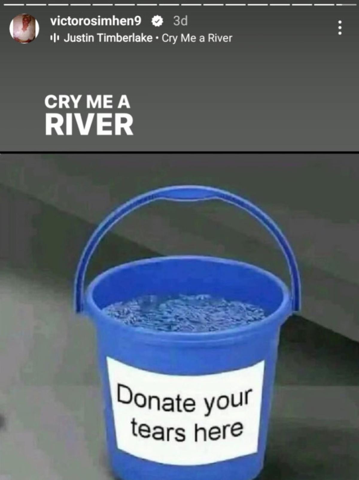 Osimhen, sosyal medya hesabından yaptığı açıklamada, "Gözyaşlarınızı buraya bağışlayın." ifadelerini kullandı.