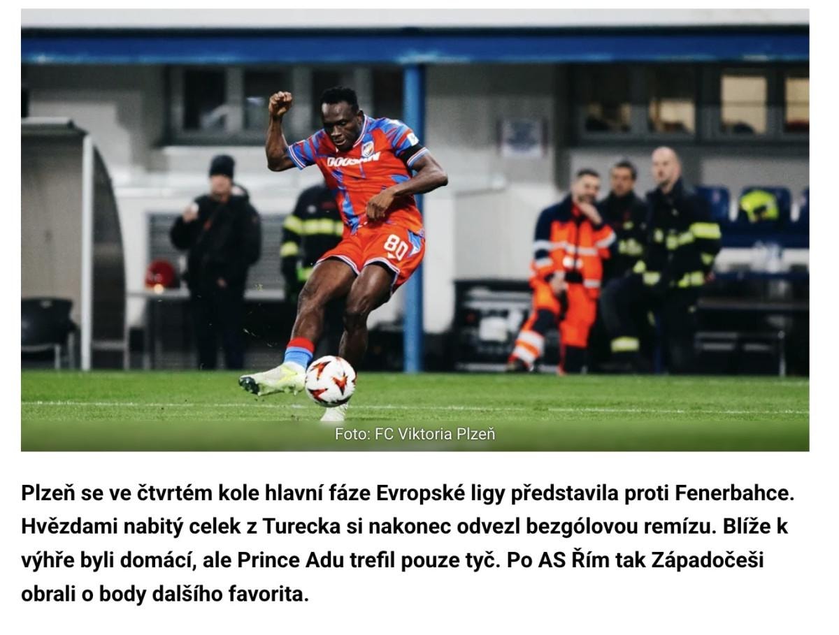 - Fenerbahçe, UEFA Avrupa Ligi'nde Viktoria Plzen ile 0-0 berabere kaldı.