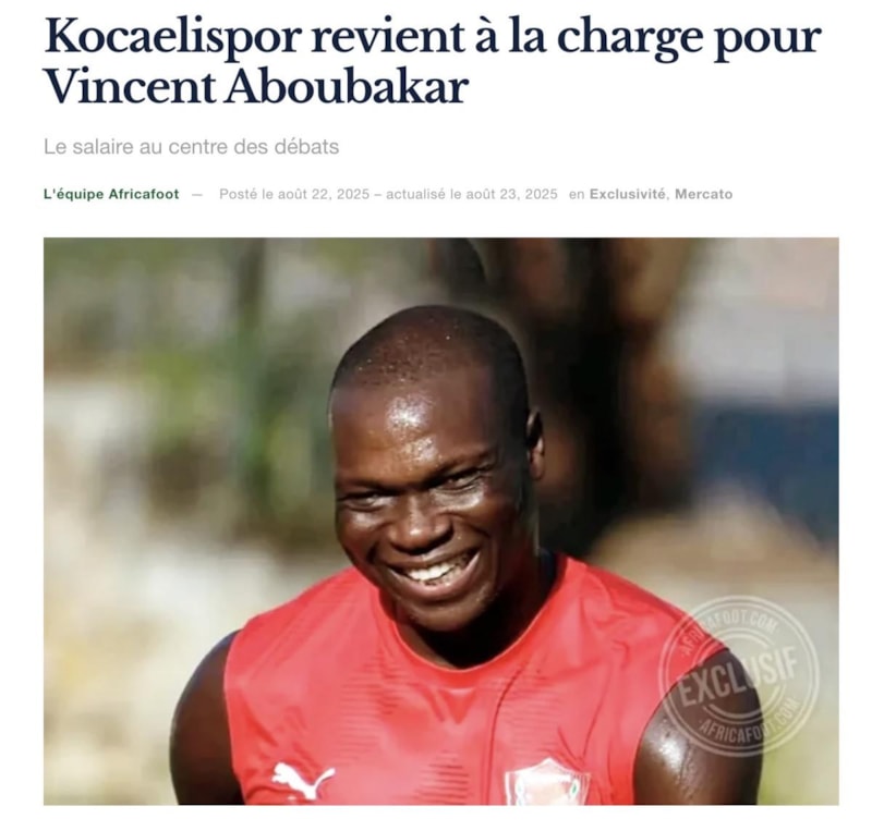 Africafoot’un haberine göre Kocaelispor, Vincent Aboubakar’ı kadrosuna katmak için yeniden harekete geçti.
