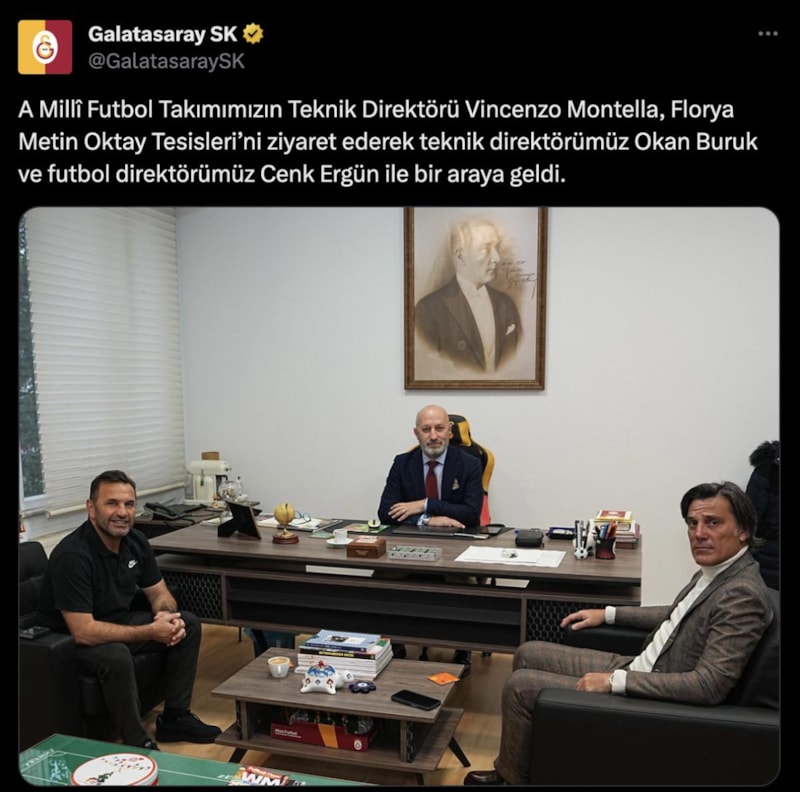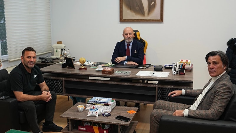 Montella, burada Galatasaray Teknik Direktörü Okan Buruk ve Futbol Direktörü Cenk Ergün ile bir araya geldi.