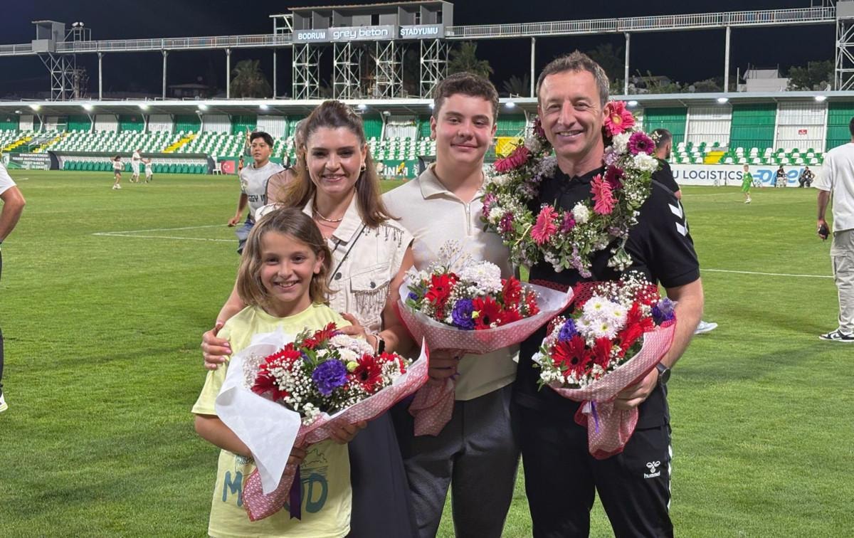 Volkan Ahmet Narinç’i son maçında ailesi yalnız bırakmadı ve çiçeklerle hakemliğe veda etti.