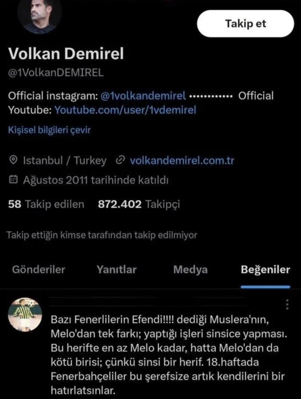 41 yaşındaki çalıştırıcı, "Yanlışlıkla olmuştur" dedi. Volkan Demirel, daha sonra bu beğeniyi sosyal medya hesabından da geri çekti.