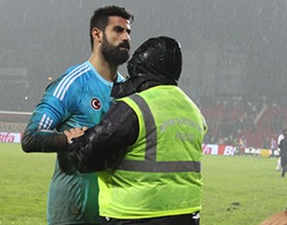 "Vatan haini" tezahüratı bir süre daha devam edince Volkan kale arkasındaki taraftarın önüne kadar giderek buradaki güvenlik görevlilerini uyardı. Taraftardan şikayetçi olan Volkan daha sonra kaleci antrenörünün de ısrarıyla kalesine döndü ve ısınma hareketlerine devam etti.