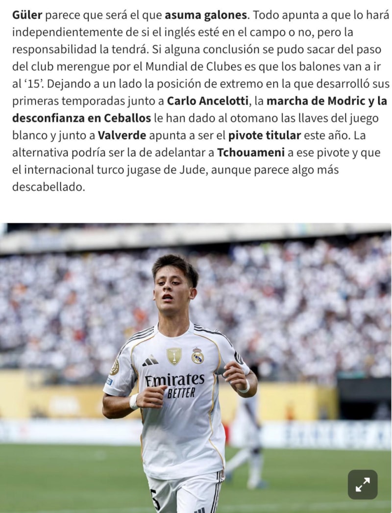 Öte yandan Vavel'in haberinde ise Arda Güler'in, Xabi Alonso için kilit bir oyuncu olduğuna değinildi ve yeni rolünün kariyerinde bir dönüm noktası olacağı vurgulandı.